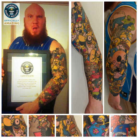 Em outro recorde do Guinness Book, Lee Weir de 27 anos, conseguiu o recorde de maior número de tatuagens de um único personagem. Trata-se do grande, magnífico Homer Simpson. As tatuagens de Lee, foram feitas no Braço e demonstram Homer em diferentes estágios e caracterizações, como por exemplo, Hulk,